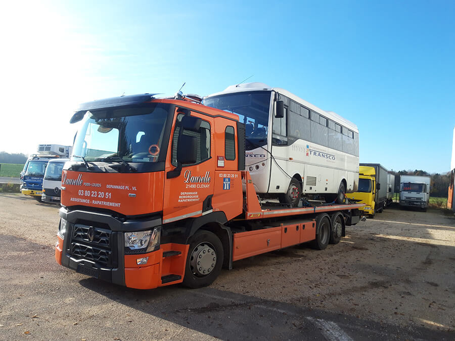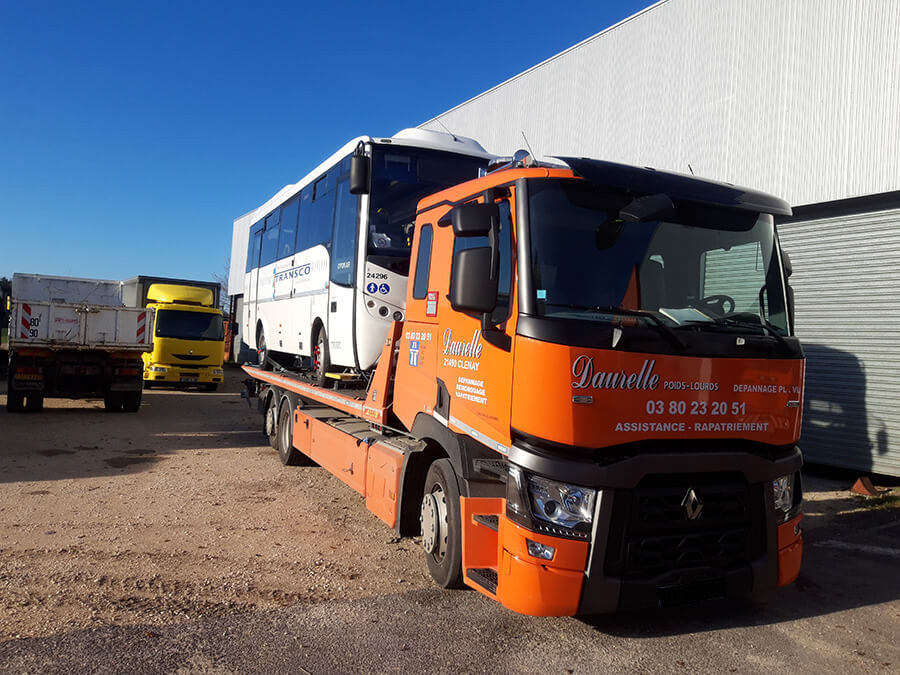 Comme pour les poids lourds et les camions, l’entreprise Daurelle est spécialisée dans le dépannage et le remorquage de tous types de bus : autocars de tourisme, bus scolaires, etc. sur les départements de Côte d’Or (21), Haute-Saône (70), Haute-Marne (52) et couvrant des villes telles que Dijon, Nuits-Saint-Georges, Sombernon, Gray, Vesoul, Langres, …